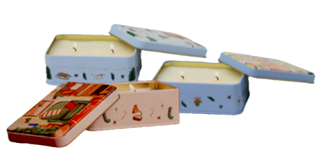 The perfect stocking stuffer! Sweet and savory holiday scents will waft through your home with these two-wick, 5 oz. soy candles. Choose from three charming designs to suit your style!