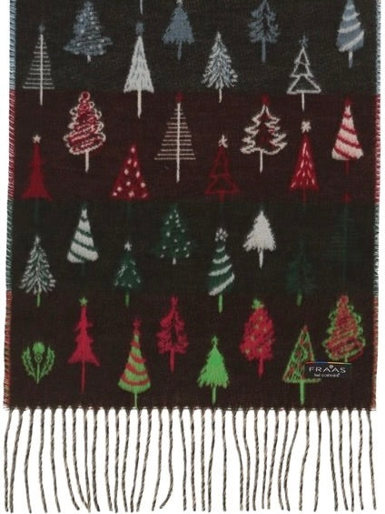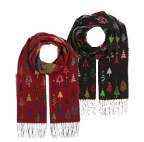 Brightly colored trees dot these warm and cozy winter scarves.  100% acrylic with a cashmere feel, they are a generous 79" x 14" with fringe detail.  Perfect to top off your favorite coat or share your style as a great gift!