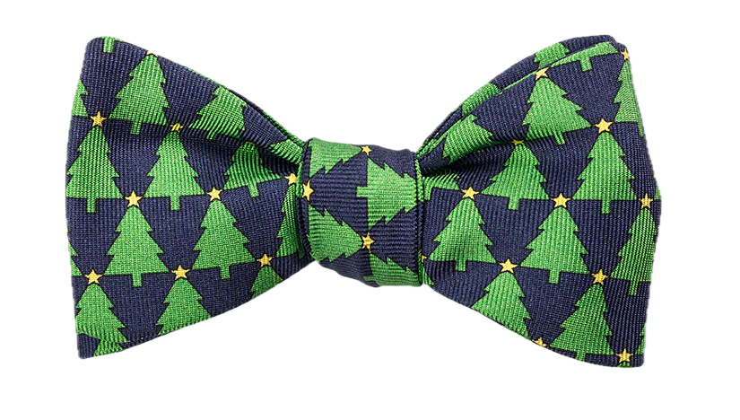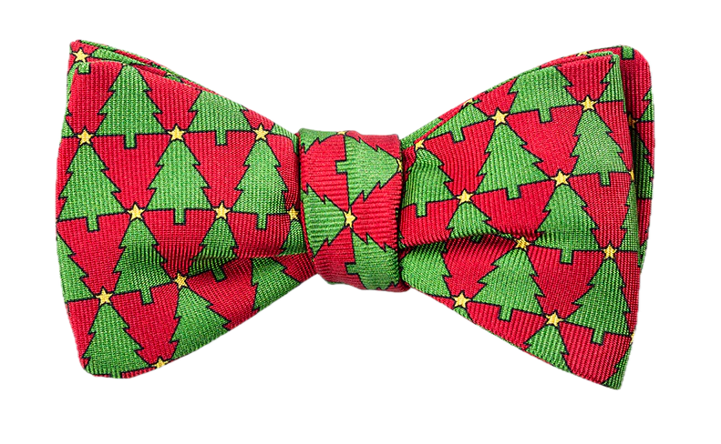 Get dressed for your holiday fetes!! Subtle, sophisticated seasonal style. 100% silk, sewn in USA. Necktie is 3/14" wide, 57" long. Bowtie fits 15 1/2 to 18" neck, ties 2 1/2" bow.