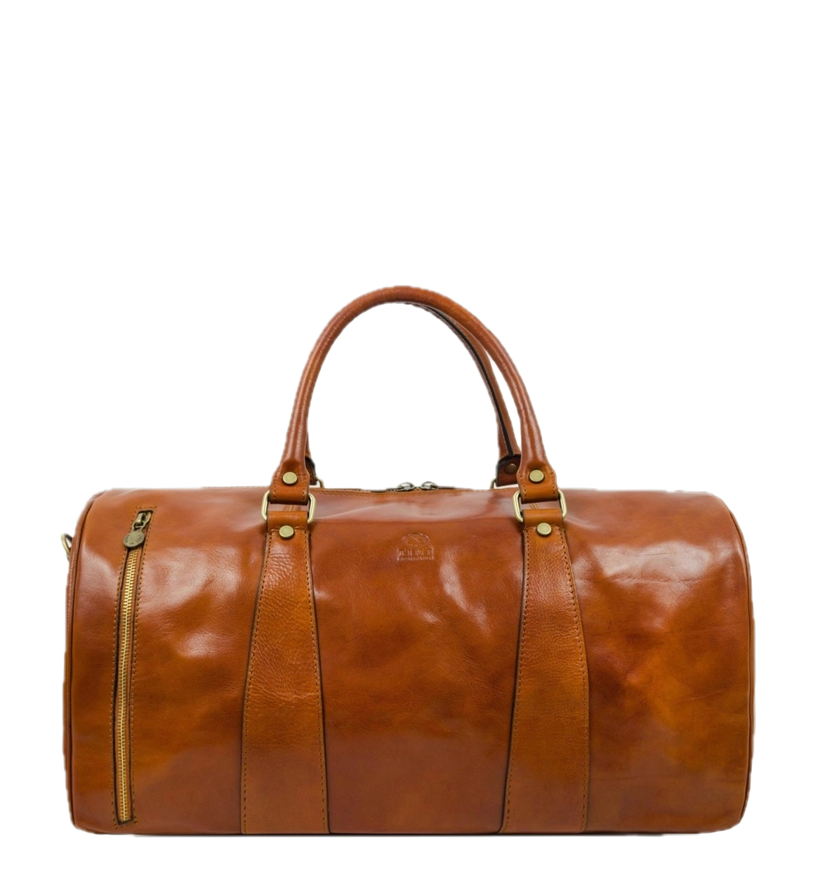 This versatile leather duffel merges classic craftsmanship with contemporary practicality. Spacious enough for weekend escapes, brief business travels, or spontaneous overnight stays. Detachable shoulder strap with adjustable length, exterior zip pocket provides easy access to important items, brass feet keep it sturdy for packing and unpacking and protect the bottom of the bag from wear and tear.