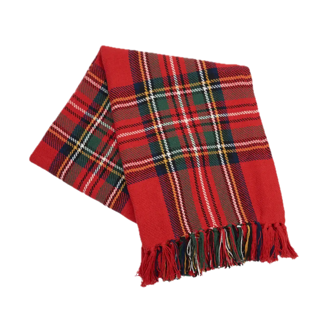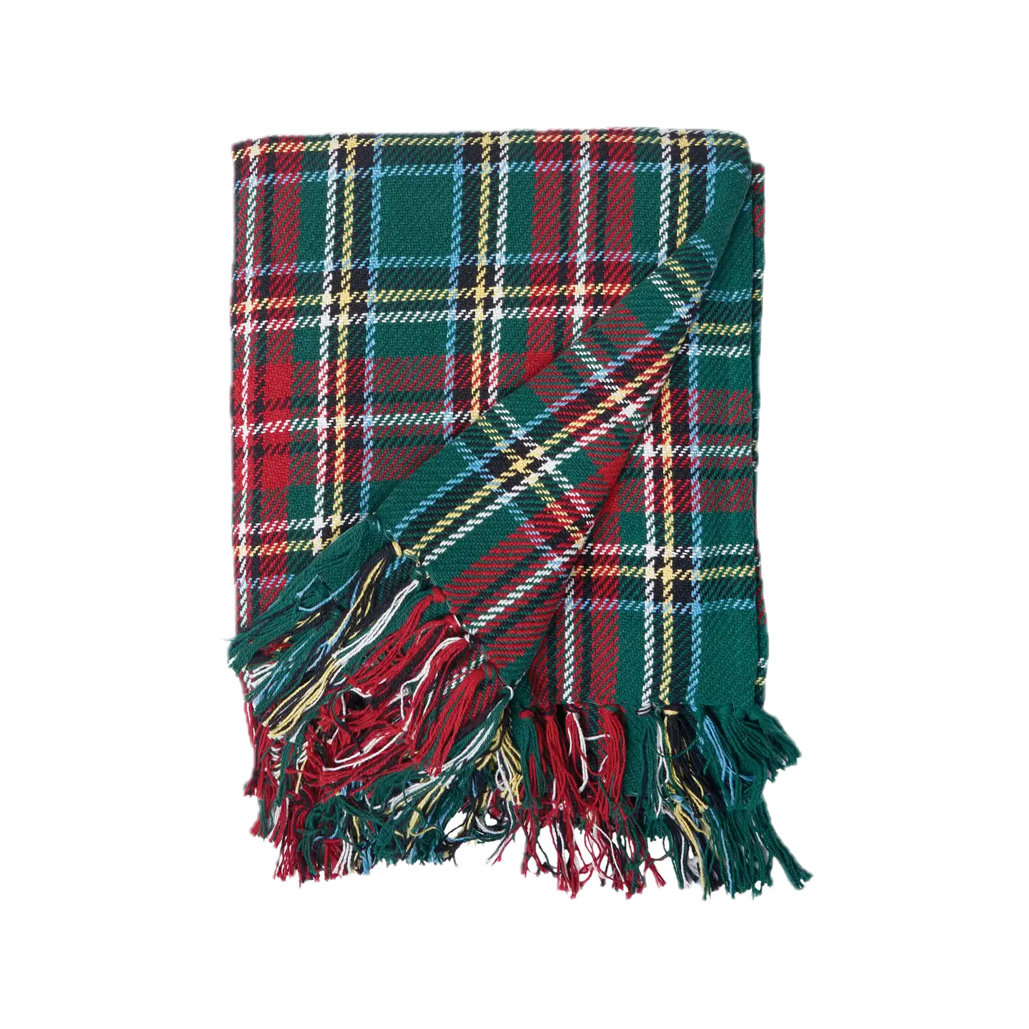 Elevate your seasonal décor with this refined plaid throw, featuring timeless red and green tartan designs. Crafted from luxuriously soft cotton, throws are machine washable, tumble dry low or by air, 50" x 60". Delicate knotted fringe detailing along the edges adds subtle texture and visual interest. Drape it across your sofa or bed for an effortlessly polished look that bridges comfort and sophistication throughout the colder months.