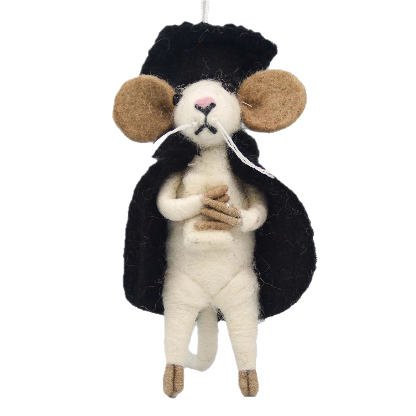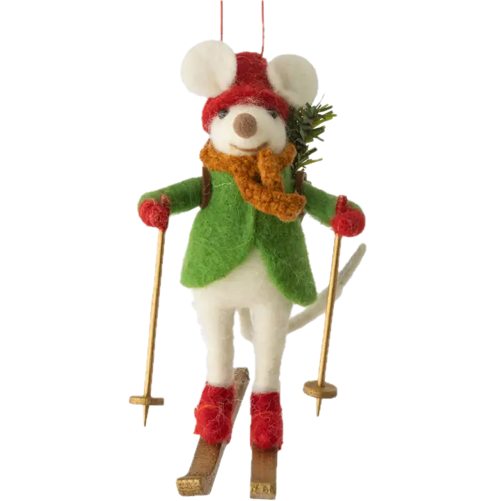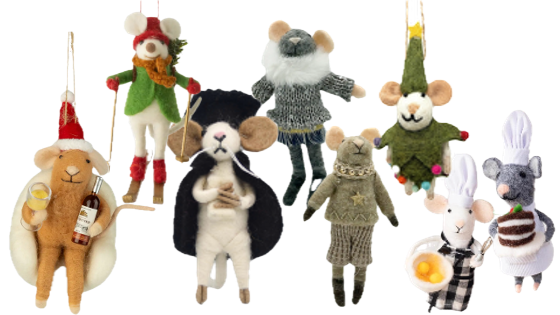 Festive felt mice take on various personalities and activities! Ranging in size from approximately 4" to 6", share your style, sport or favorite way to relax. Perfect to tie on a package when giving a gift or enjoy on your very own tree!!