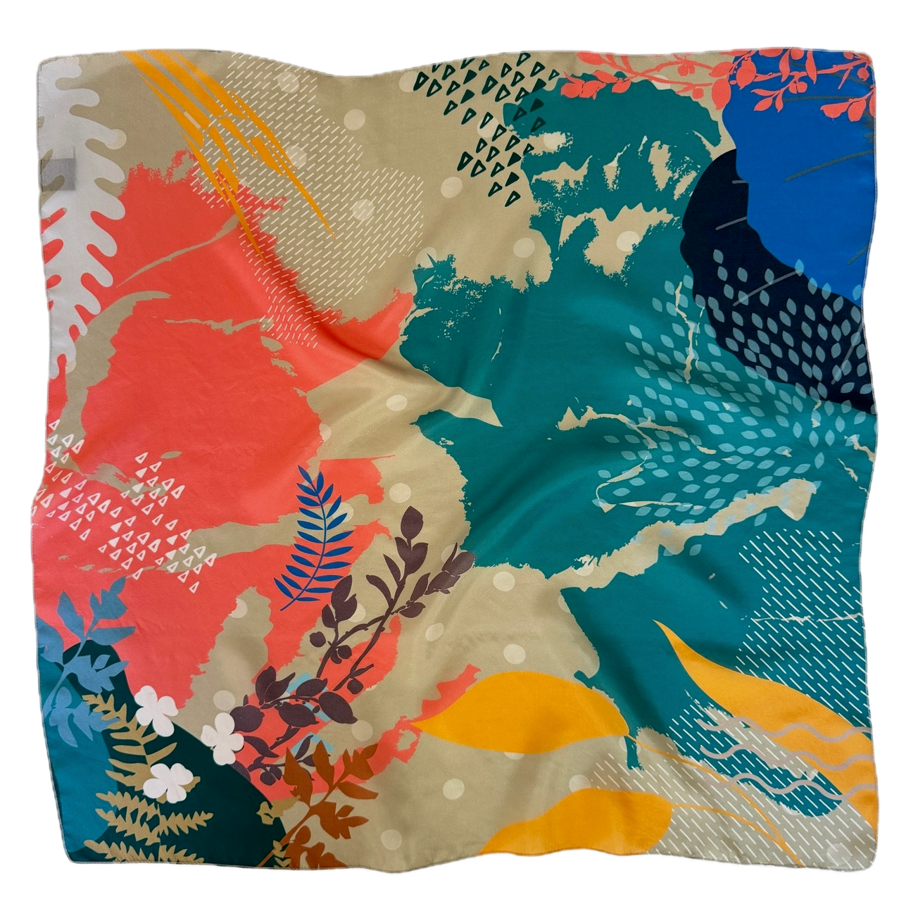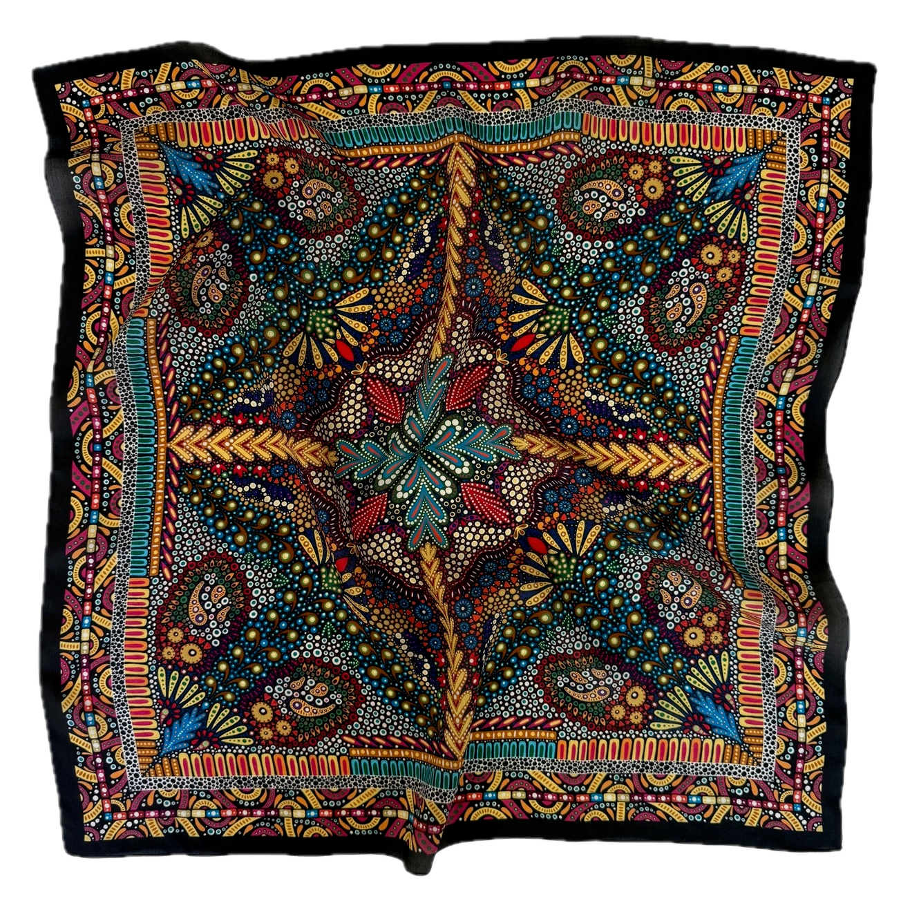Crafted from luxurious Habutai silk, these digitally printed square scarves embody refined elegance. The premium silk delivers an exceptionally soft hand with a subtle luminous sheen, while its lightweight construction makes it effortlessly versatile. 25" x 25", finished with a delicate rolled hem, hand wash or dry clean.